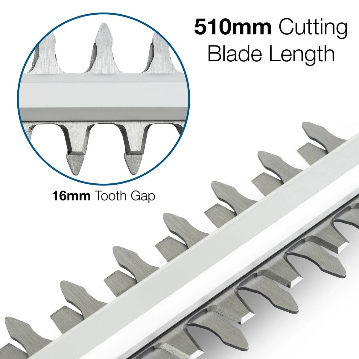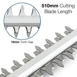 This Hyundai hedge trimmer’s laser-cut sharpened steel 510mm / 20” cutting blade will slice through all types of hedging up to 16mm in diameter, providing a precise cut each and every time.