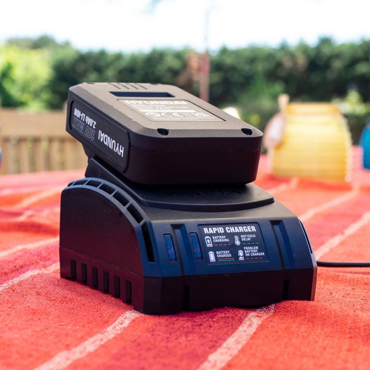 - Interchangeable battery: Power the whole Hyundai 20V MAX garden machinery and power tool range from the same battery