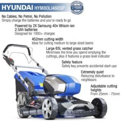 - HYM80LI460SP battery powered lawnmower