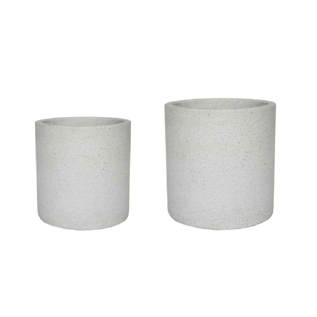 With a smooth exterior design, this simplistic set of two cylinders visually enhance your plants of choice. Presented in a modern style, this set will transform your garden into an elegant and eye–catching setting.