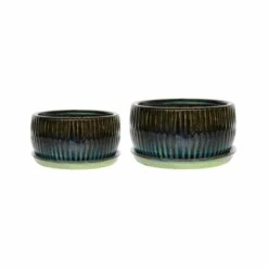 Ivyline Emerald Round Reactive Glaze Bonsai Planter Set Of 2