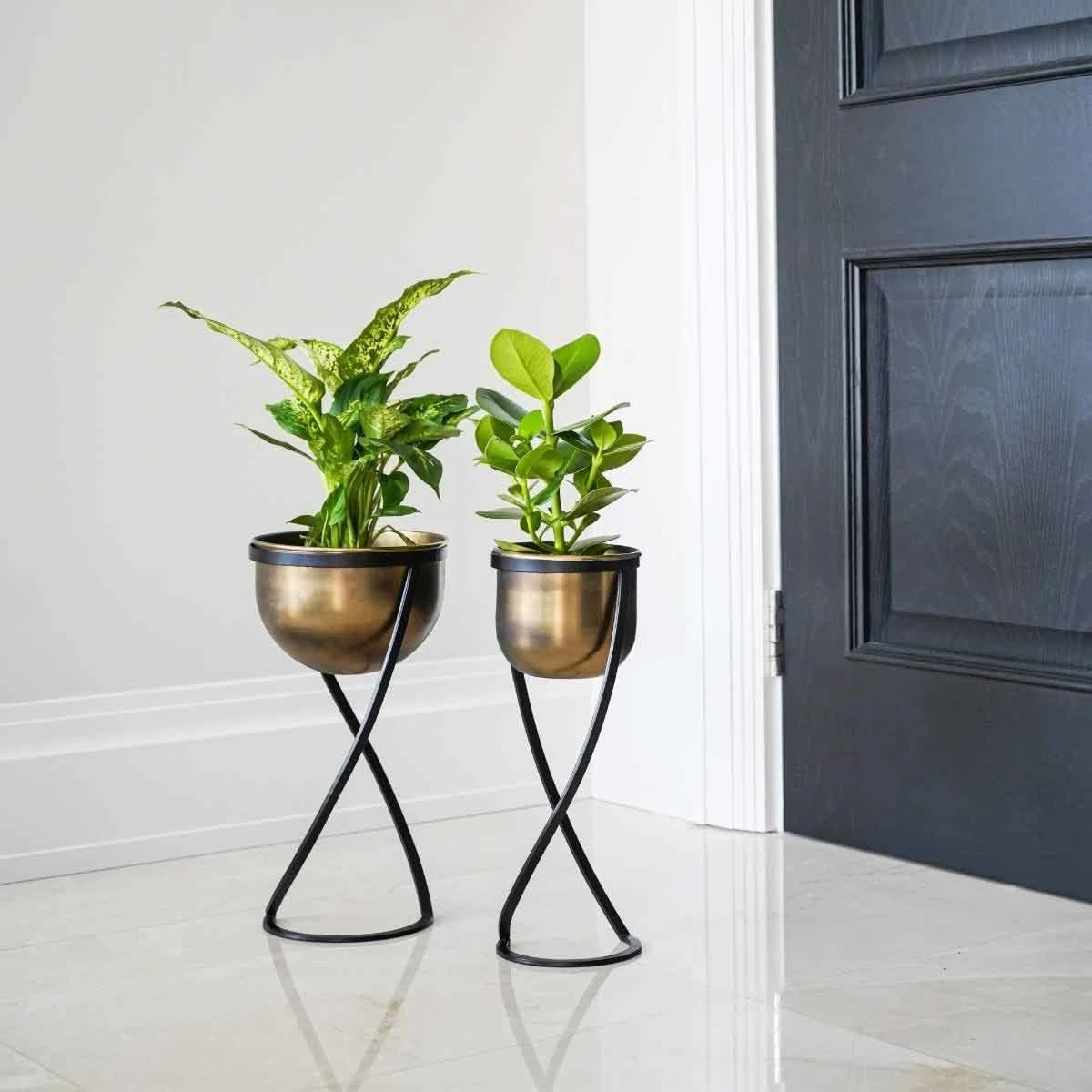 Introduce a distinctive twist to your living room décor with the Ivyline indoor Kensington metal planter and stand. Waterproof for practical plant health, this brass-finish accent piece on a modern twisted stand is perfect for spotlighting your favourite Chinese evergreen plant, but looks just as wonderful when styled alone.