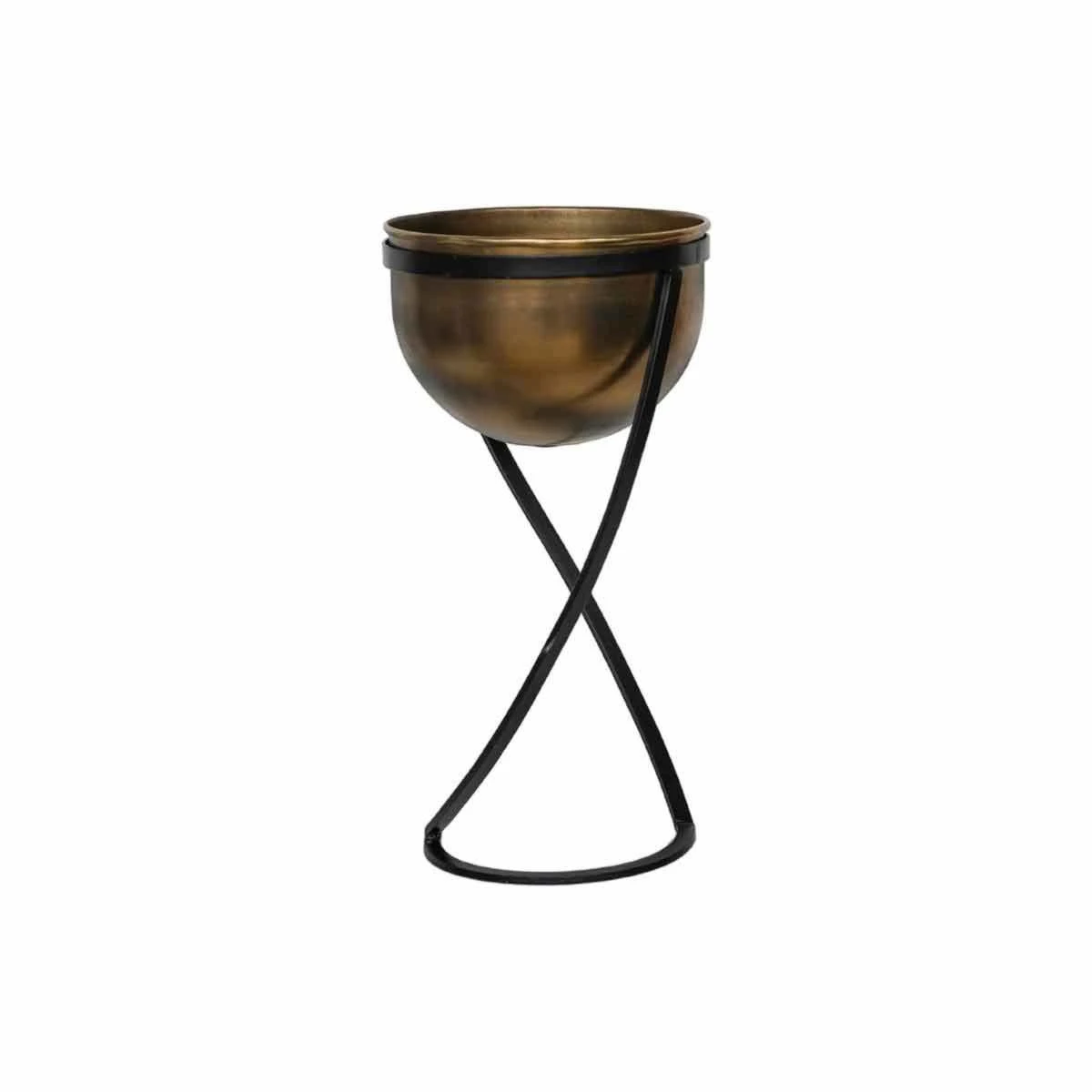 Ivyline Indoor Kensington Brass Metal Round Planter On Stand – H42Cm X W14Cm