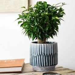 Accentuate any living space with the contemporary Onno planter by Ivyline. Round with a ridge finish and premium glaze, this waterproof planter elevates the beauty of your favourite blooms. Showcasing an elegant Denim hue, the Onno perfectly pops against lush green foliage for a gorgeous design piece alone or it equally works wonderfully with other planters as part of a larger arrangement.