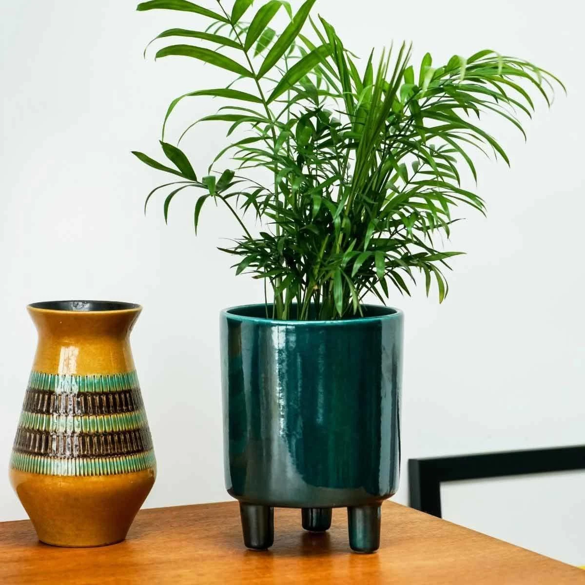 Whether on the floor or atop a table, the Pisa planter from Ivyline features a unique emerald finish that never fails to captivate. Classic in design with a premium glaze and three standing feet, this waterproof planter is suited for both the home and garden, making it perfect for showcasing a wide range of plants and blooms. We’re styling ours with other bowls and planters from the range for a curated mid-century accent look.