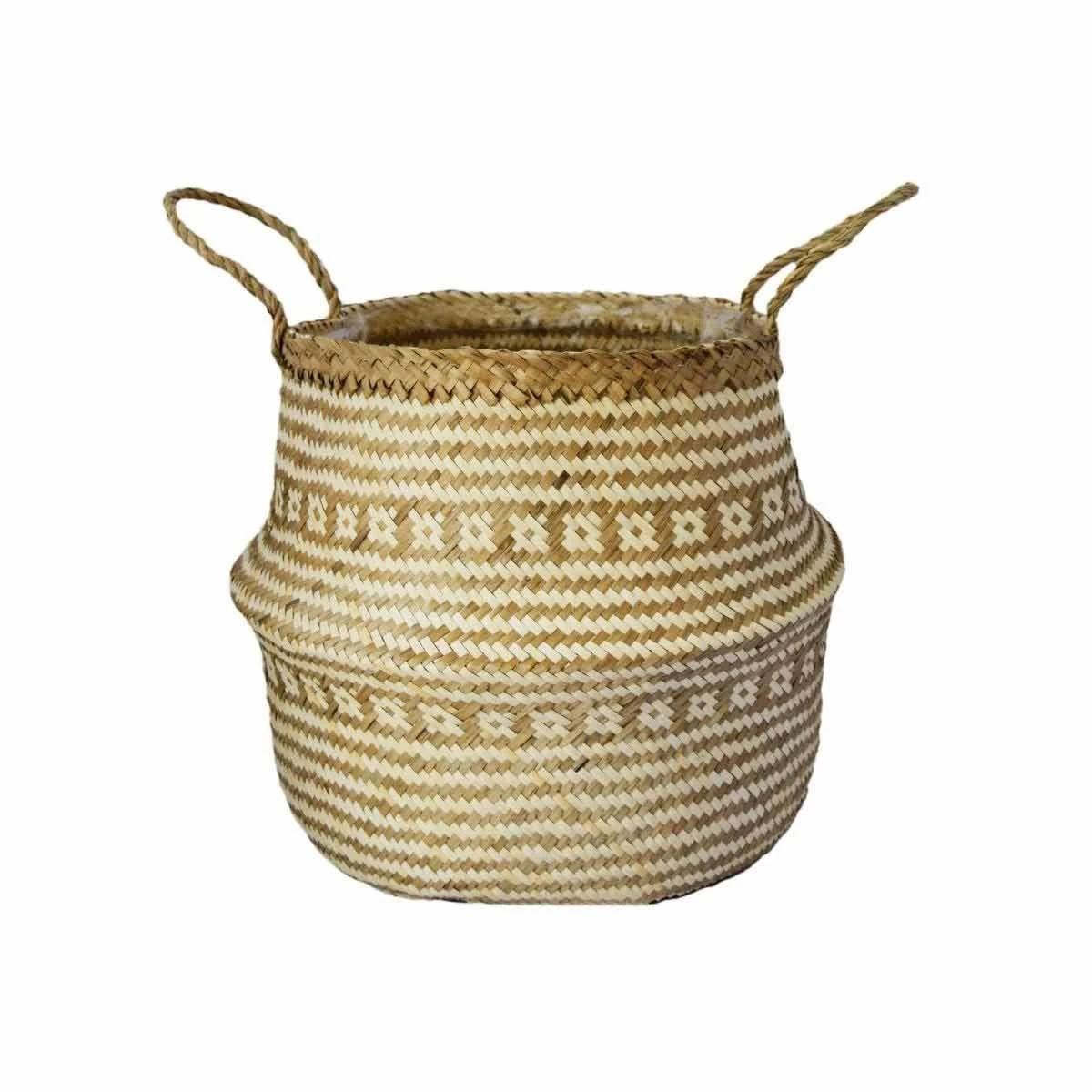 Ivyline Seagrass Tribal White Lined Basket Small – H25Cm X D30Cm