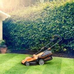- Folding handles give a compact footprint, and a central carry handle makes it easy to move the mower in and out of tight spaces in the garage or shed