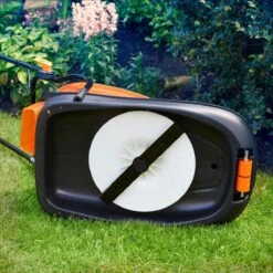 - Grass clippings are collected and compacted in the central 20L grass box which lifts out conveniently through the top of the mower