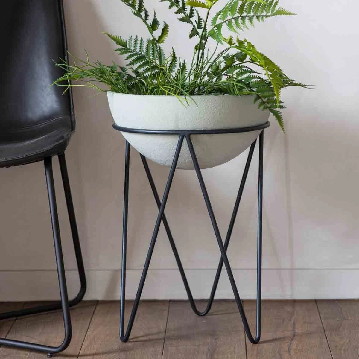 The Liva Metal Planter features a beautifully curved grey pot supported by the angular black metal stand, perfect for adding a statement to your home.