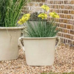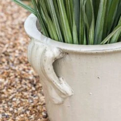 The Louis Planter combines a traditional style with a natural oatmeal glaze. A larger version is also available and both are suitable for outdoor and indoor use.