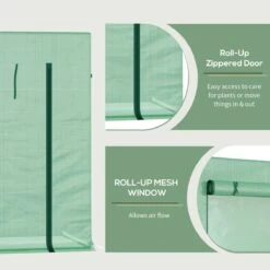 Enhance the look of your garden or backyard while adding the ideal growing solution with this greenhouse from Outsunny. Designed to enable growth for most types of fruits and vegs and a popular choice for growing tomatoes. The greenhouse also features a UV-resistant top cover, a roll-up zip panel, and windows for added ventilation. Powder-coated steel frame and four ground stakes offer added stability to the greenhouse.