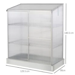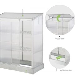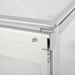 Give your plants and vegetables somewhere to enjoy the sunshine and grow heartily, thanks to this Aluminium Greenhouse from Outsunny. Small aluminium cold frame provides strength, with the polycarbonate panels protecting the inside from medium wind and rain, whilst allowing the sunlight to pass through. Inside two shelves are placed for organisation, with a lift-up lid and sliding door for easy access.