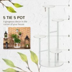 A handy place for holding and displaying plants, flower, collectables and more. This Outsunny corner plant stand offers storage space for your home. The steel structure is strong, with a large base for it to stand balanced. The flower stand has five tiers, giving you five spaces to display what you want.
