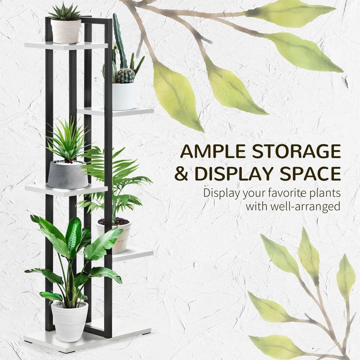 - Five tiers: The plant rack can hold up to six pots. Plenty of space to showcase your favourite plants