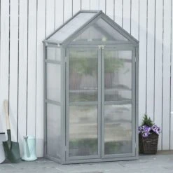 This cold frame greenhouse, from Outsunny, allows you to grow plants and more almost anywhere. It uses a wood frame so it solidly keeps in shape, fitted with transparent polycarbonate panels: they keep the heat inside whilst the transparency allows the sun to shine through as best as possible. Inside there are two adjustable shelves to create three differently-sized areas for organised growth storage. It’s finished with two doors with latches for easy access.