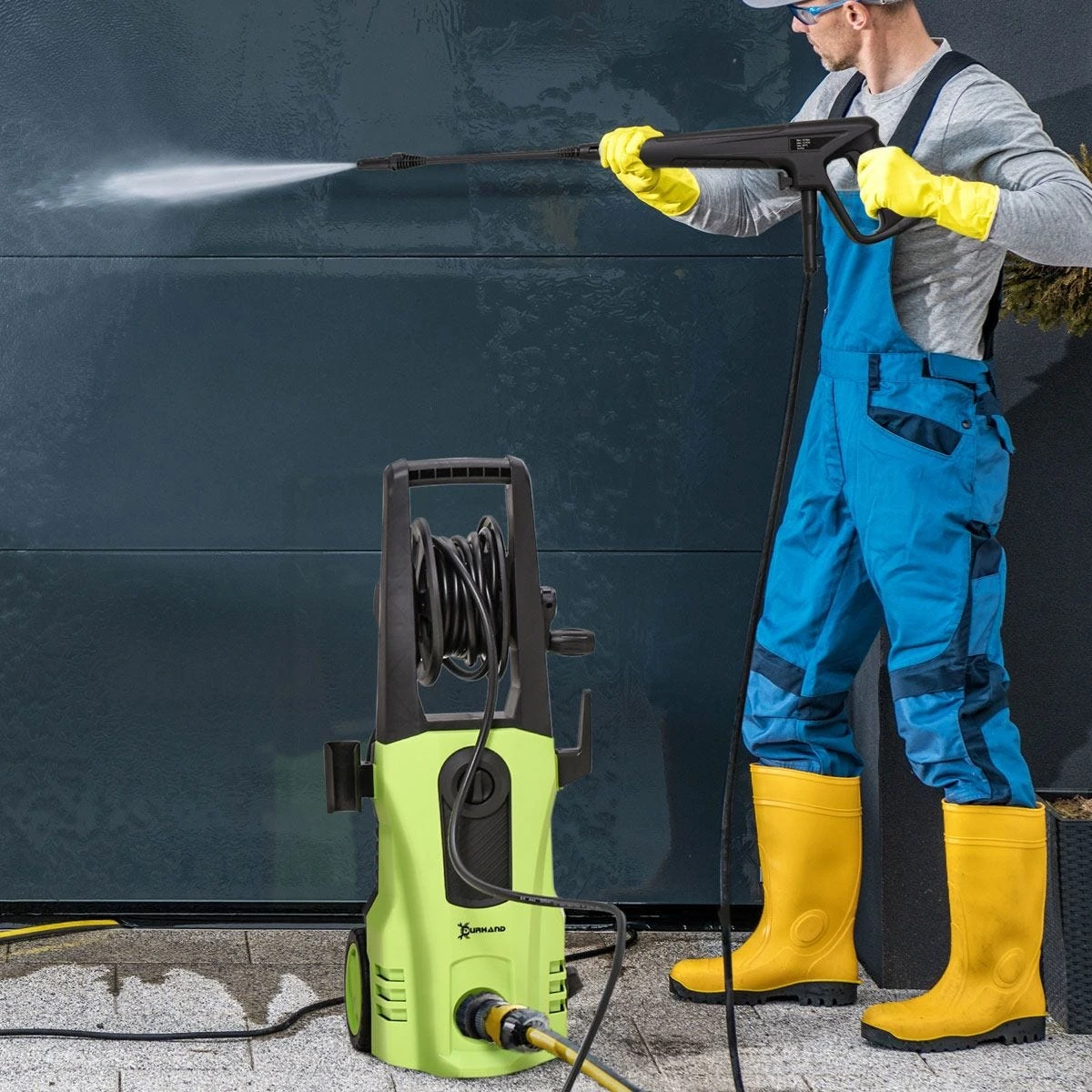 - Multiple cleaning tasks: The jet washer can support a rated pressure of 100 bar and a max. pressure of 150 bar thanks to the 1800W powerful motor, and can effectively deal with various of dirt from dust to stubborn stains. Vehicles, outer walls, deck floors, outdoor furniture, garden fences, and more – all of them can acquire a completely new outlook