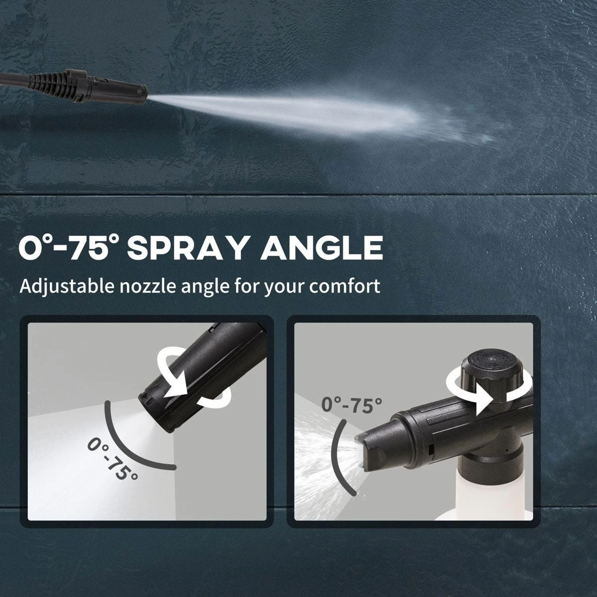 - Adjustable nozzle angle: Adjust the spray angle as needed from 0° to 75° to keep your hand in a comfortable position