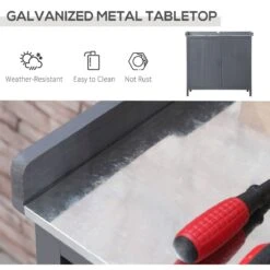 - GALVANIZED METAL TABLE TOP: Outdoor storage cabinet is strong and tough – rust-resistant and a solid place to work on plants and flowers and more. Easy to wipe clean from dirt and other mess