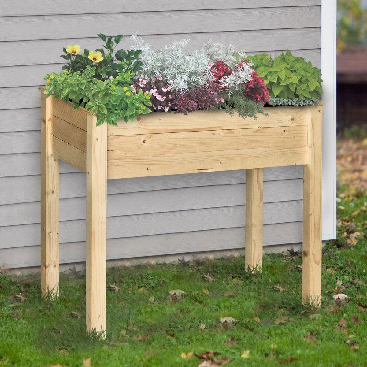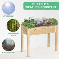 Give your beloved flowers and plants their own spot to grow and nurture with this raised planter bed from Outsunny. Made from fir wood in a natural finish to blend in seamlessly with its surroundings, its design features a large 80 x 40cm open planter, giving you full control to plant a design that shows off your unique gardening style, with an inner cloth bag for easy and quick cleaning. Raised in design to stop any dirt touching the main unit, as well as reducing stress on the back and knees, it is finished with water-resistant paint all over to ensure it can be used outdoors all year-round. The key to falling in love with your garden all over again.
