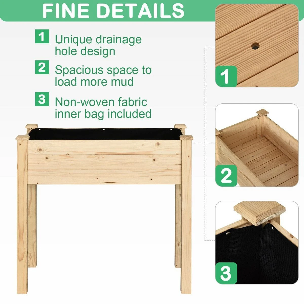 - THICK FIR WOOD CONSTRUCTION: Will withstand weight with plants, vegetables and fruits inside