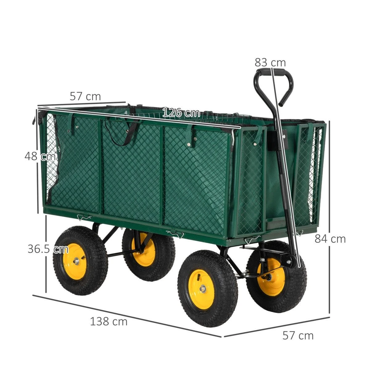 - 342L GARDEN CART: Large and spacious – suitable for moving and transporting flowers, saplings, rocks, building materials, gardening tools etc. Four wheels and handle to move around easily
