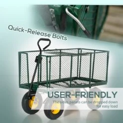 - DROP DOWN SIDES: Quick-release bolts for easy-use, transforms into a flat bed to move larger objects. The high sides prevent spillages