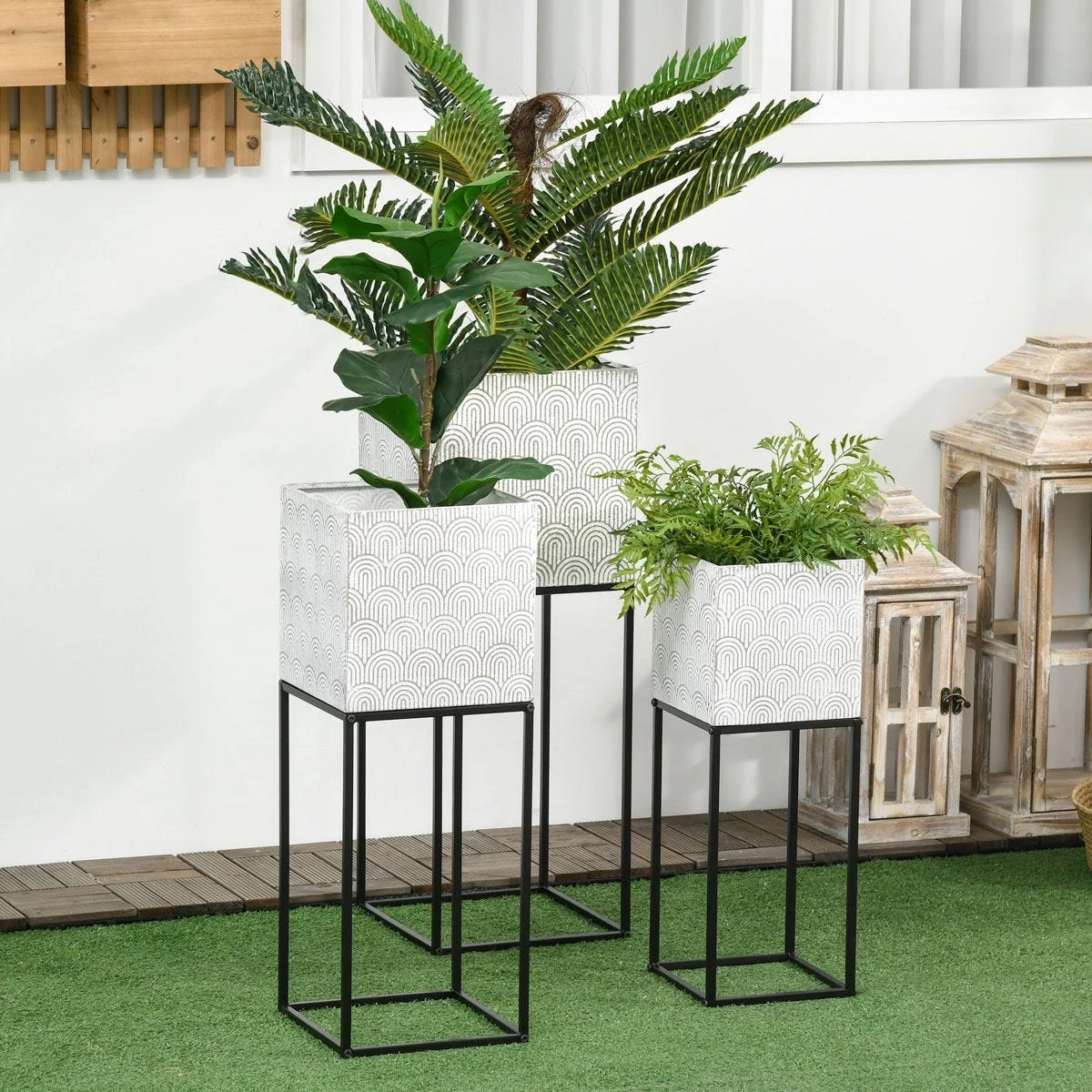 Add these Outsunny metal plant stand set to your home – they’ll bring extra life to your plants. Each planter with stand has a metal base for plenty of support. Three sizes for different plants. Use together or individually. Simply fill the baskets with a plant of your choice and start to admire.