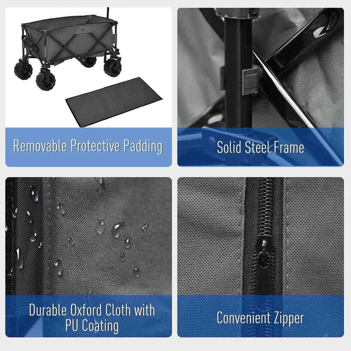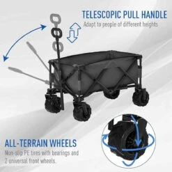 - Four multi-ground wheels: Two of which rotate 360° to prevent trailer getting stuck whilst pulling, all wheels can move on the sand and ground easily and smoothly