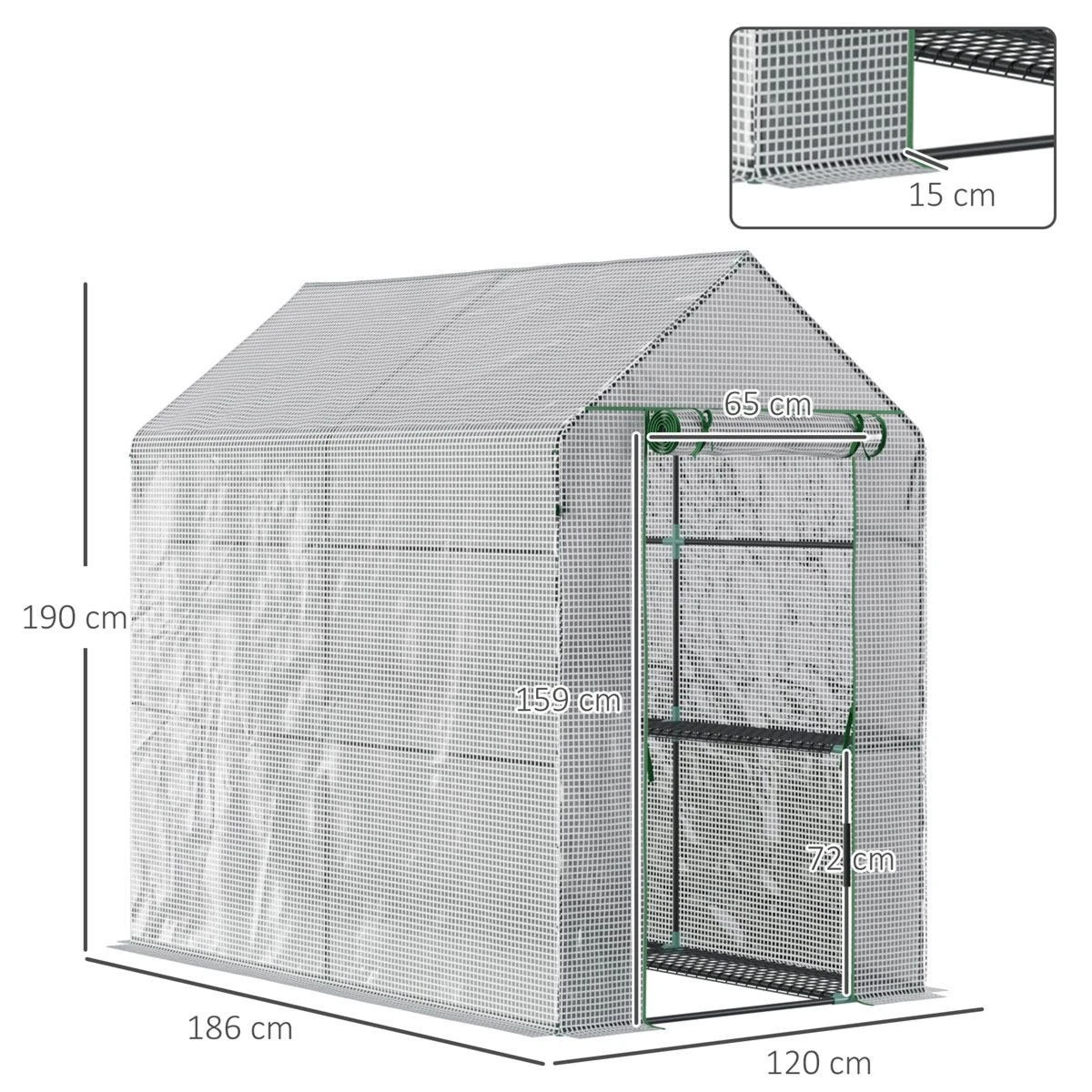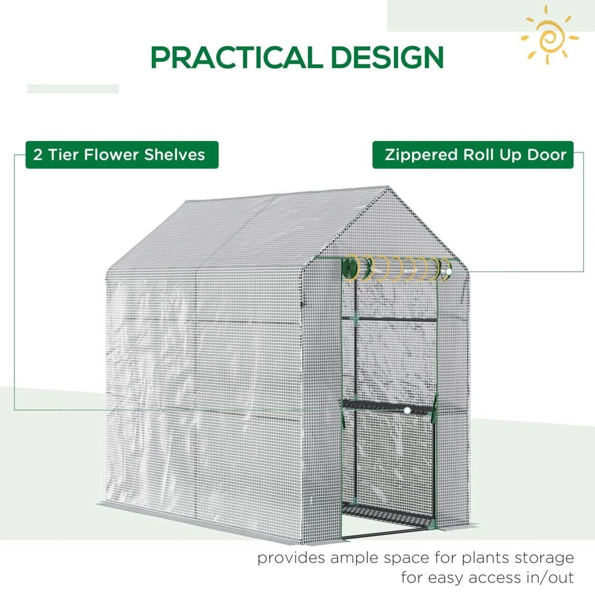 Looking for a way to grow crops all year round? Do it with this Outsunny walk-in greenhouse. Steel frame for a tough core, it’s fitted with a PE plastic cover for shelter against the elements. The roll-up door ensures easy access. Inside, there are four wired panels for easy storage and organisation. Update your garden, grow plants and fall in love with your garden all over again.
