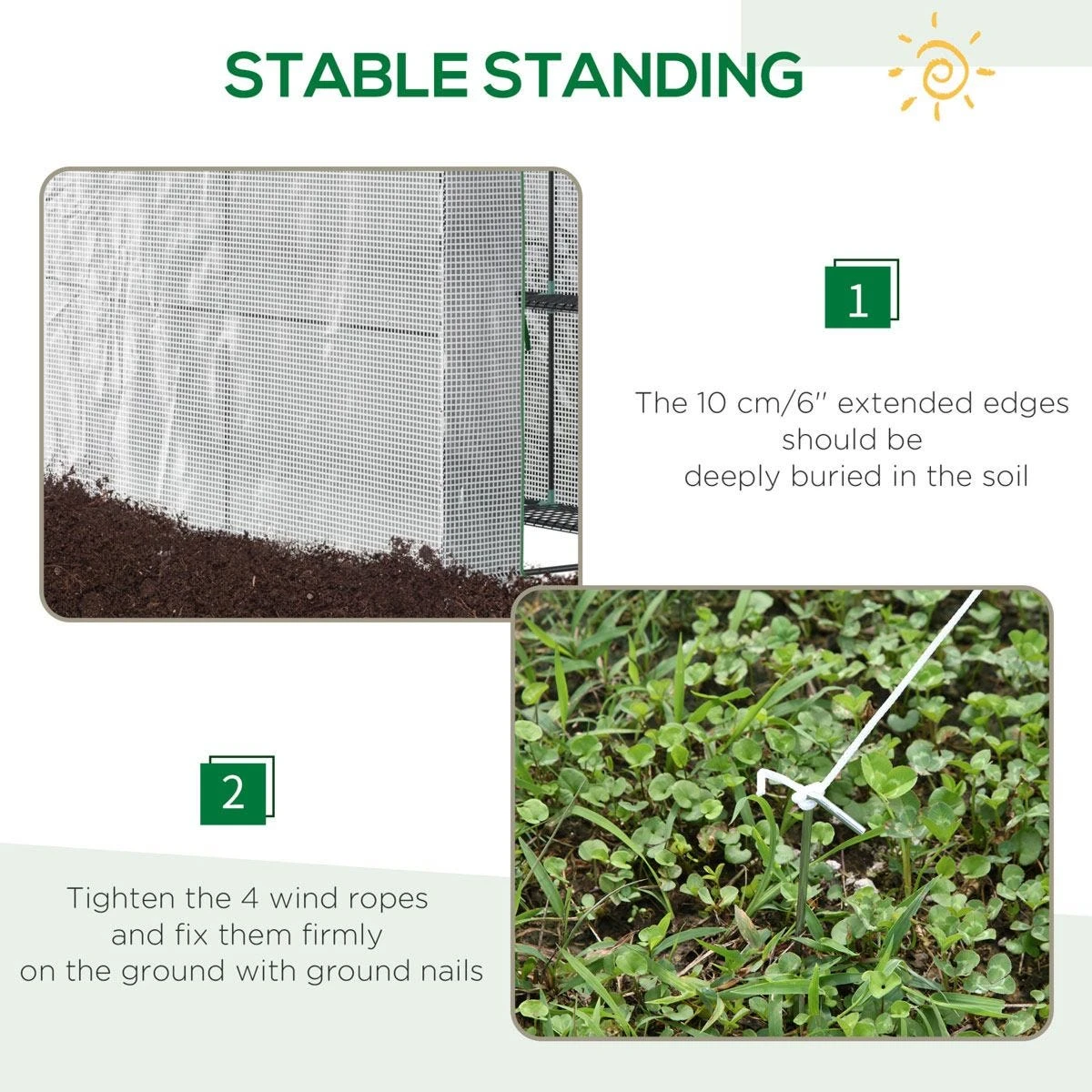 - STEEL FRAME: Stands steady and upright, a reliable core structure. Accessories included: guy ropes and ground stakes