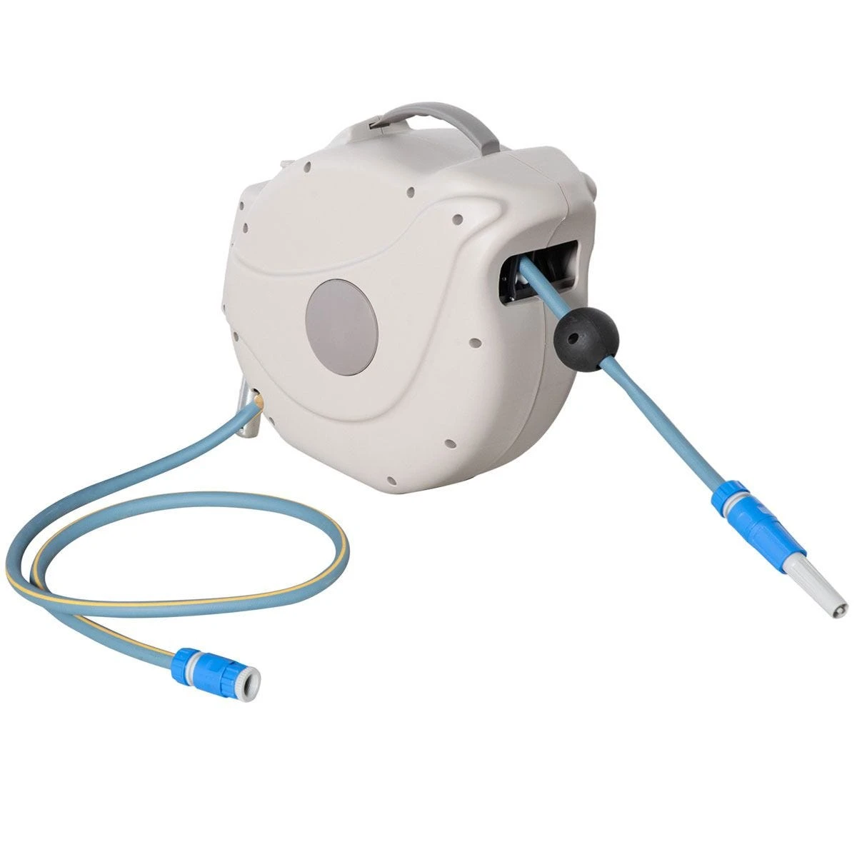 Watering gardens, washing cars and cleaning outdoor spots at an easier length: this Outsunny retractable hose reel. The 10.1m cable is very long, you can reach far-out spots with little hassle.