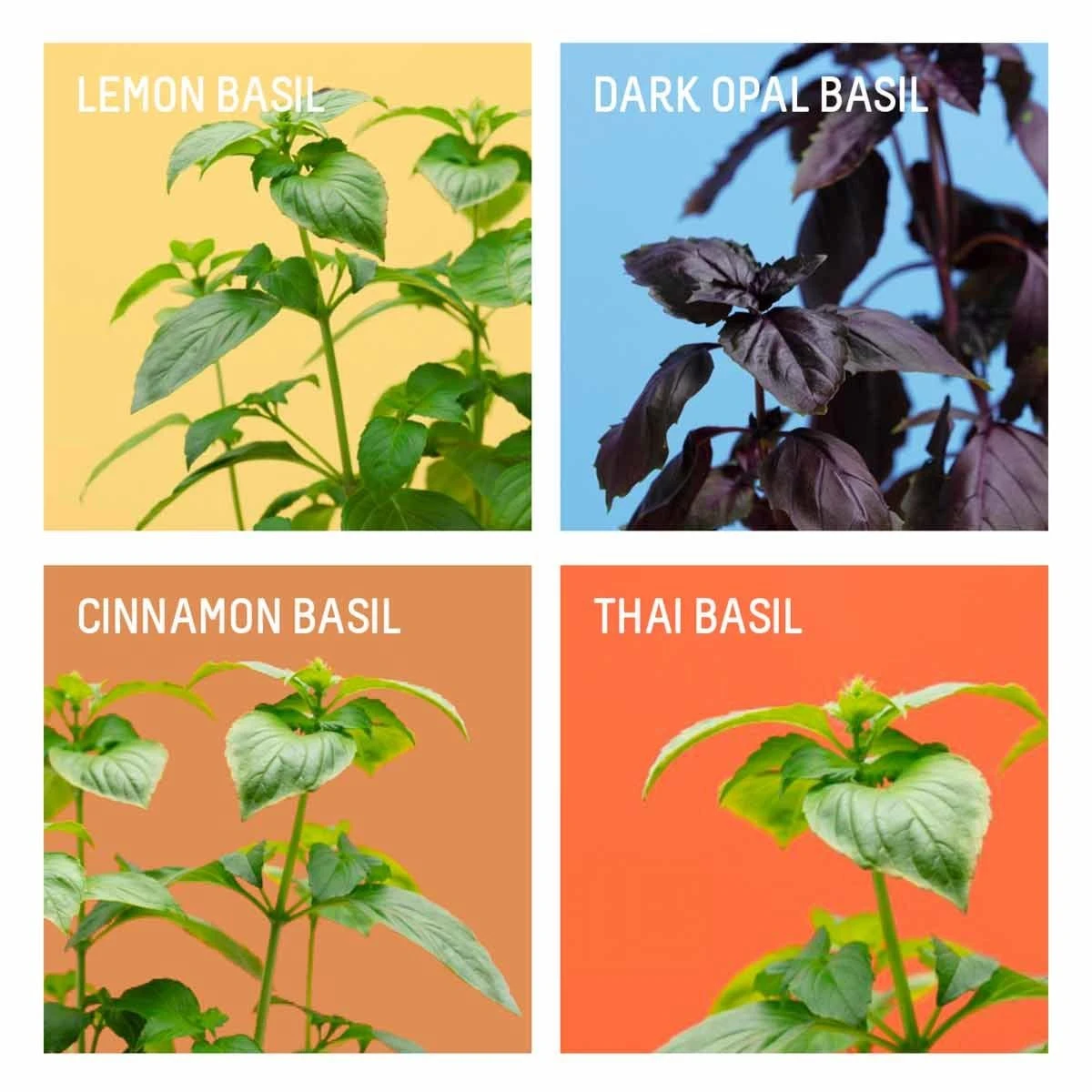 Substrate, seeds and nutrients, everything is provided with this set of 4 Pret a Pousser pods! Including Lemon Basil which provides a good taste of lemongrass to be enjoyed fresh with fruit, fish or in salads. Dark Opal Basil, the megalomaniac Basil, will coat your salads and desserts with its beautiful purple colour and peppery notes, whereas Thai Basil is your passport to Asia offering spicy, aniseed flavours. With Cinnamon Basil it’s all in the name – a spicy, plant-based flavour that will change your everyday life.