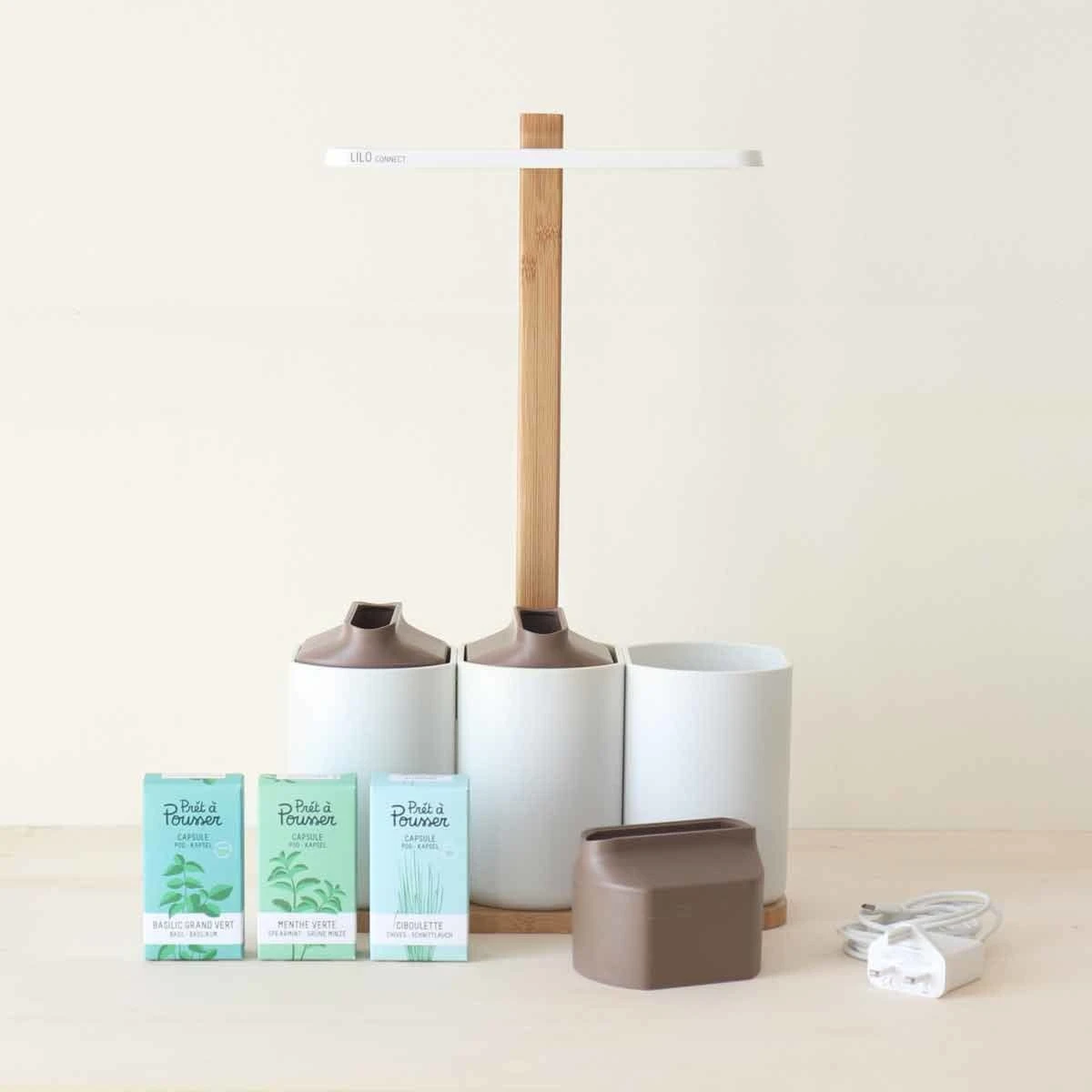 Looking for a generous indoor garden that sits on a surface in your home? Then the Lilo range is for you, and why not upgrade with this connected and intuitive version of the traditional Lilo indoor garden! Grow your herbs, salads, mini-vegatables and flowers at home, even more easily thanks to the liminaire connected to the Pret a Pousser app! The plant floats on the water. It draws the necessary minerals and Nano’s patented design ensures perfect oxygenation of the roots. On your side, add water every 2 to 4 weeks.