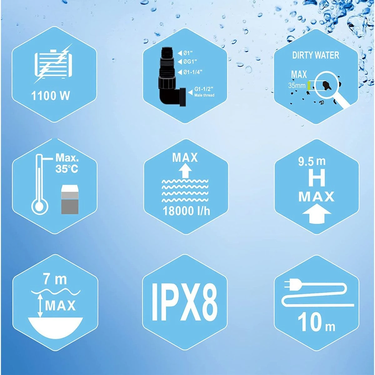 - Moves Up to 18,000L water per hour – perfect for draining flooded rooms, pools, and more