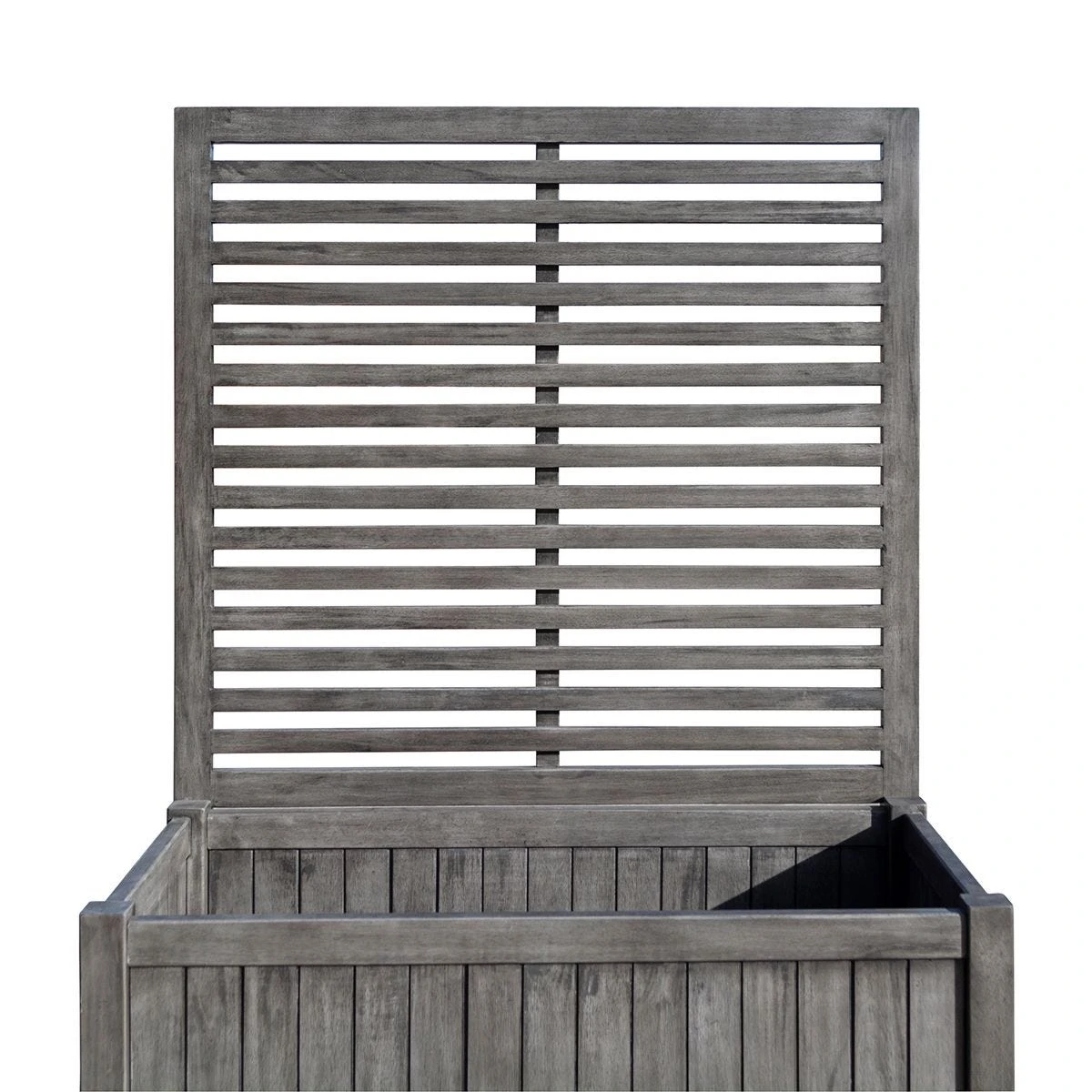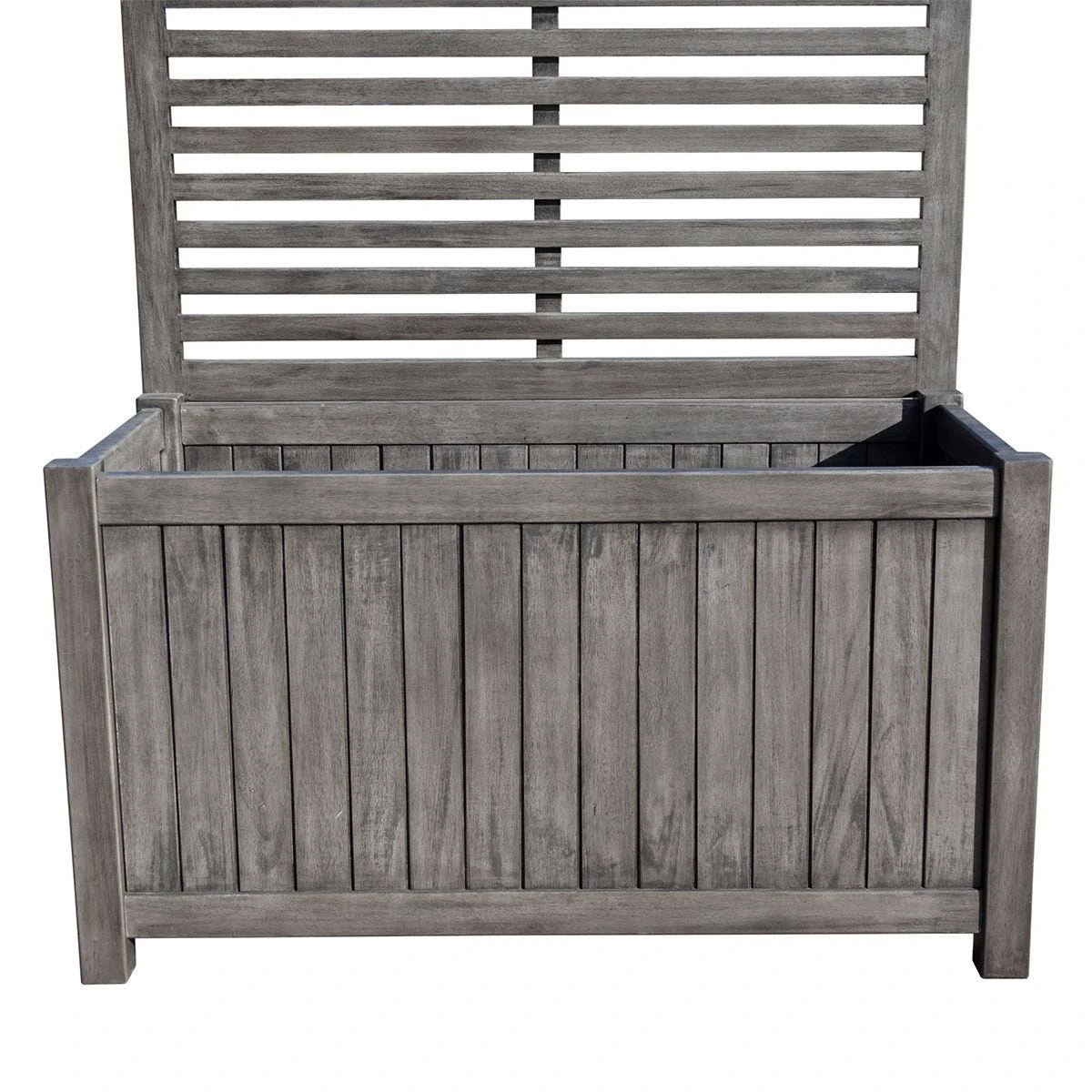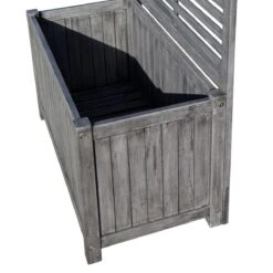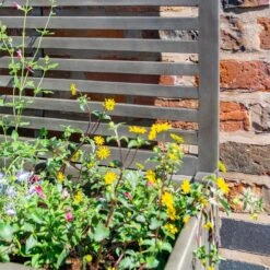 The Alderley Rectangular Planter is pre-painted in a contemporary grey wash with a lacquer finish, has a back trellis that is ideal for climbing plants and has an approximate capacity of 100 litres.