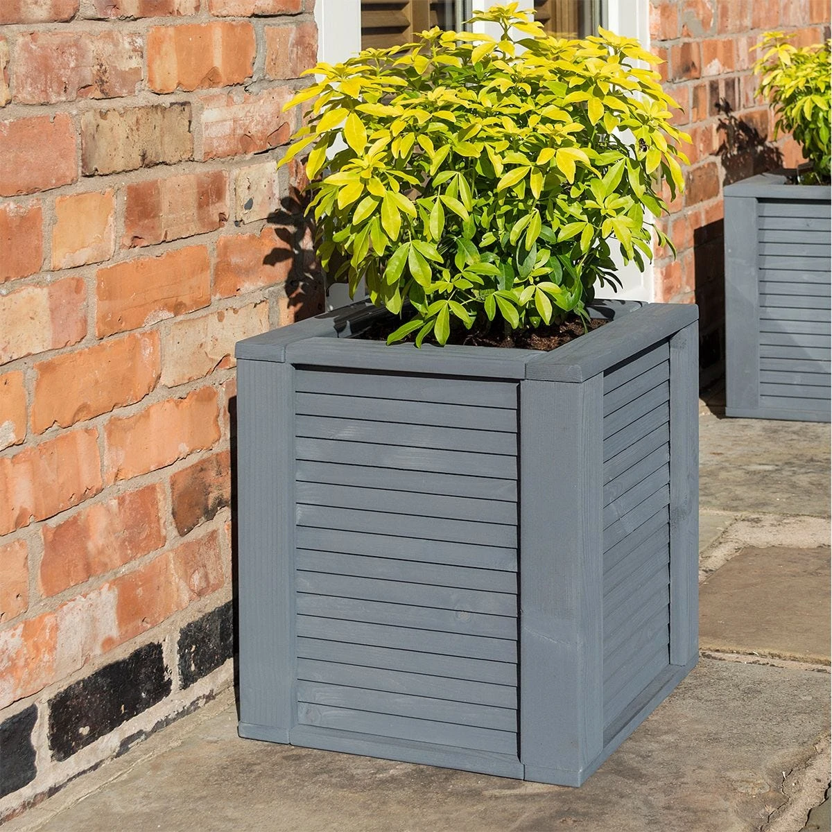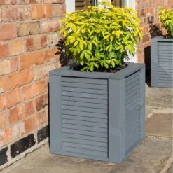 The Rowlinson Palermo Square Planter is pre-painted in a contemporary grey finish and comes with a removable plastic liner to get you planting up straight away in the garden. A sturdy design with layered slacks of wood to create an attractive design to the cube shape.