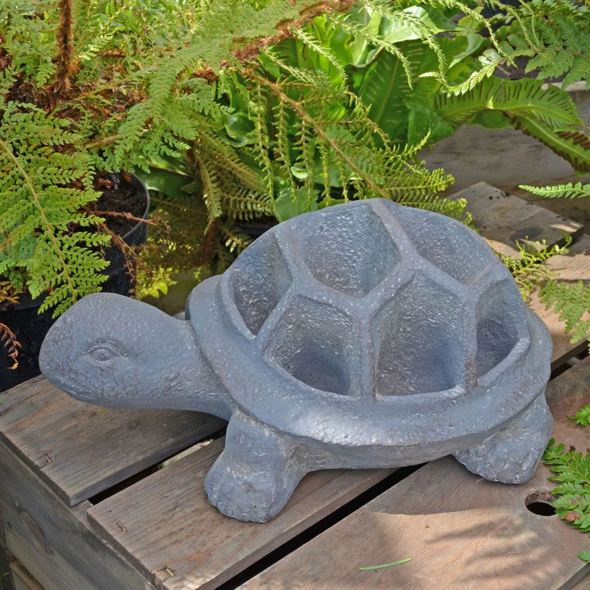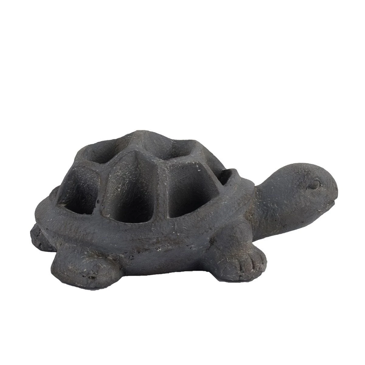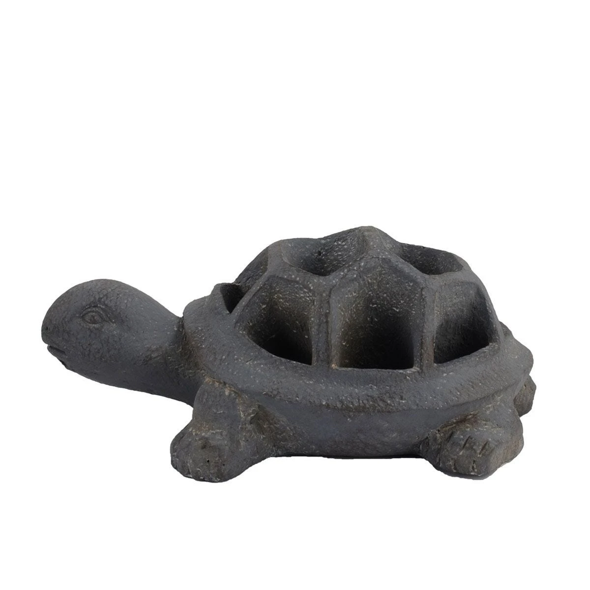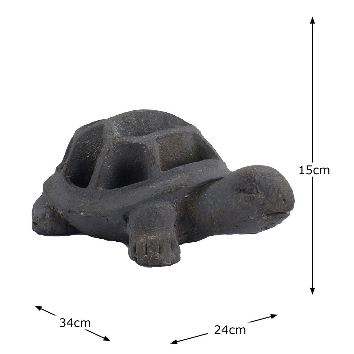 TORTOISE Planter – This cute planter offers an unusual way to display flowers or herb in tortoises shell. This quality casting has a water resistant base colour and is hand finished to give a blue iron effect. Designed for outdoor or indoor use and frost resistant. Handy planter sections allow for herbs to be planted. Cast from Fibre-clay; a combination of fibre, resin and minerals (usually stone or clay). The product is hand painted with no assembly required, simply unbox and display!