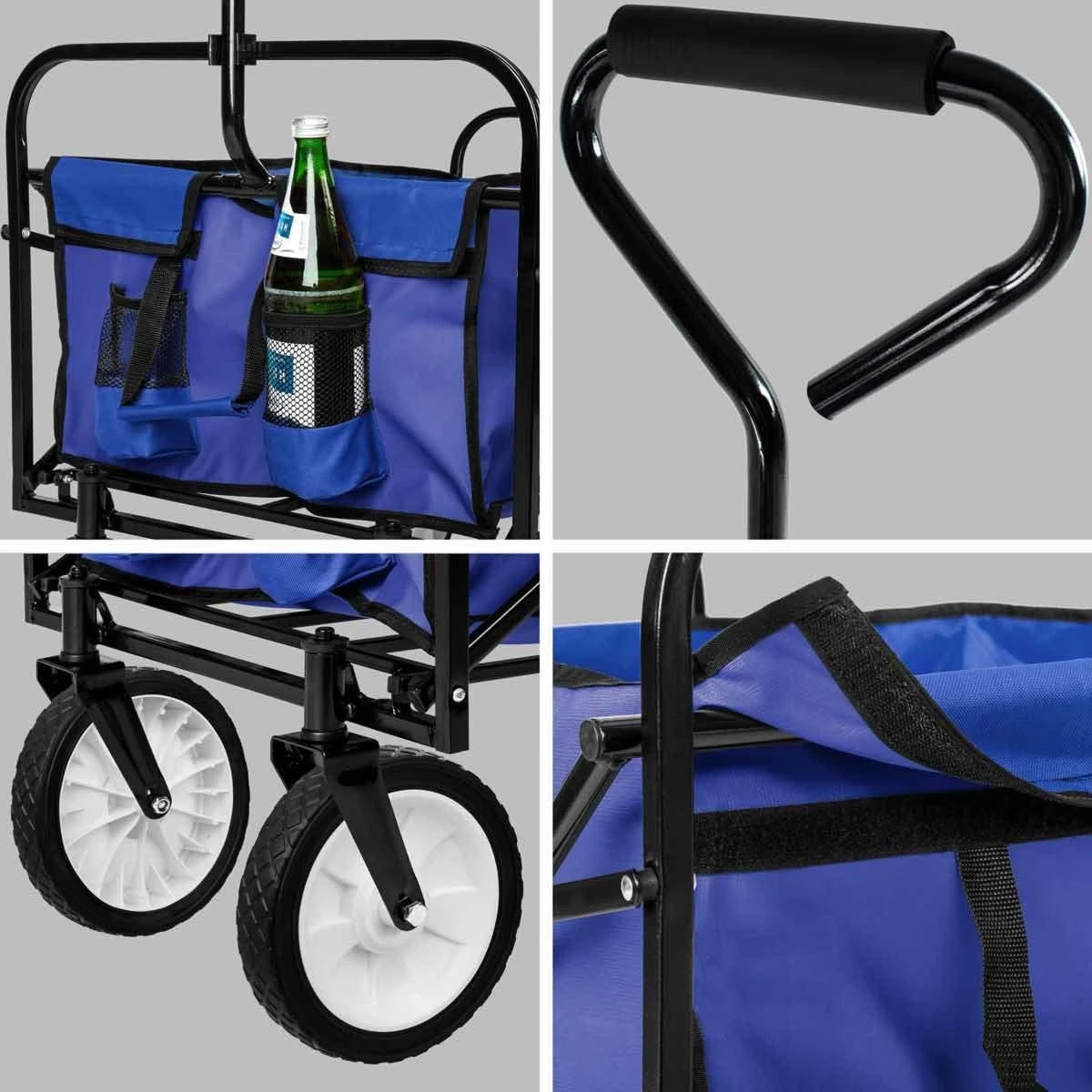 The Foldable handcart from Tektake is very versatile, whether to transport groceries, for family outings or as a load carrier at a construction site. For that reason, no household should do without it. In addition, it can be collapsed in a single step and thereby fits in any basement, garage, or trunk. The front wheels made of plastic can be rotated by 360°, allowing the transport cart to be pushed or pulled without problem. Thanks to its sturdy tubular steel frame, it can carry loads up to 80kg. The Trolley is also perfect for the outdoor garden at your home and can carry your tools to make gardening simpler and easier. The perfect storage item for your home.