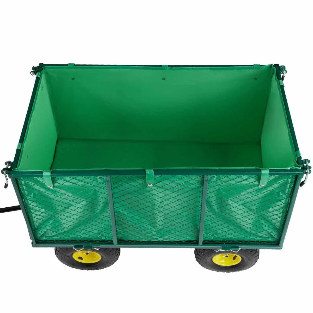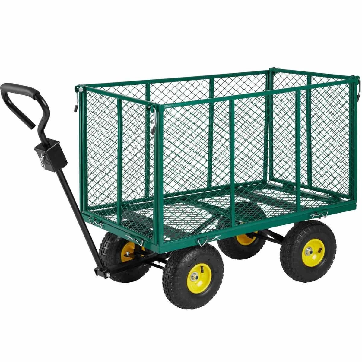 This garden Trolley from Tektake is the ideal assistant in the garden, on a construction site or on trips! The large tyres of the garden Trolley guarantee a solid stand and are perfect for off-road transport. The side wall can be folded down quickly through a quick release and allow for easy loading. with its enormous max load of 544 kg, this Trolley is suitable for even the hardest jobs. Get this multi talent for your garden now.