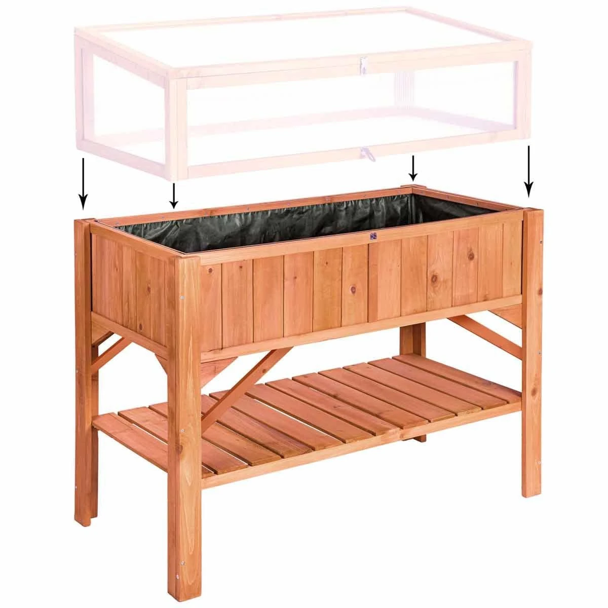 Grow kitchen herbs and various fruit and vegetable types, as well as colourful flowers and plants: there is space for all your favourites in this attractive raised bed from Tektake. The planter features a wooden shelf, perfect for storing tools and other gardening accessories. The raised bed can be a unique and charming highlight in your garden or on your balcony. The beds ergonomic and back-friendly working height ensures hours of productive gardening. The raised plant bed with shelf is made from weatherproof and impregnated pinewood, meaning it is well suited to life in your garden. In addition, the interior of the planter is fitted with a protective foil to protect the timber from moisture and soil. Get yourself this special eye-catching raised bed from Tektake so you can keep growing your favourite plants outdoors.