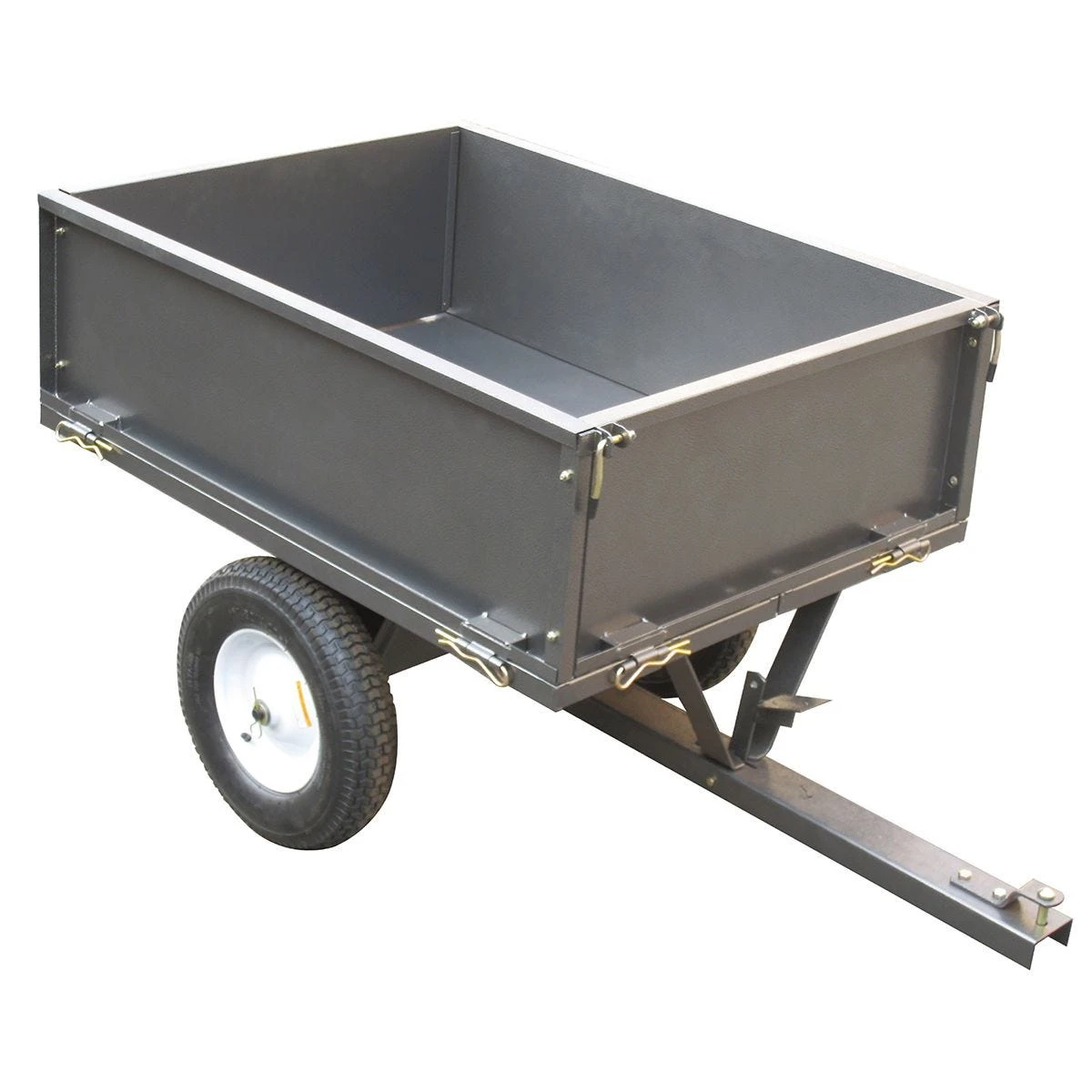 Further key features include removable sides for straightforward loading; ball-bearing wheel-mounts for smooth operation; and a universal hitch-pin that facilitates use with pretty much any make or model of garden-tractor.