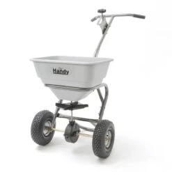 - Dual purpose – A dual-function unit, it can be used for spreading grass-seed, lawn-feed and pesticide during the spring- and summer-months; or ice-melt and processed salts through the winter period.