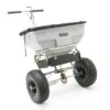 - Robust and long lasting – Large, wide-profile pneumatic tyres provide plenty of traction for the spreading-system and will prove gentle on delicate surfaces; while a corrosion-resistant poly hopper and sturdy metal frame combine to deliver rugged durability.