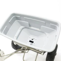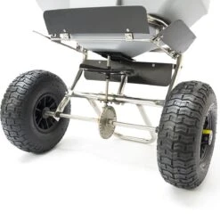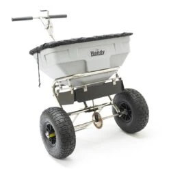 It might be Handy’s largest salt-spreader, but it’s nevertheless easy to push, with its sizeable, wide-profile pneumatic tyres (35.5cm-diameter) ensuring you’ll have no trouble propelling it across rough or undulating ground. The Handy THSSALT 57kg Salt Spreader features a conveniently-positioned handlebar-mounted adjuster that facilitates precision setting of the spread-rate.