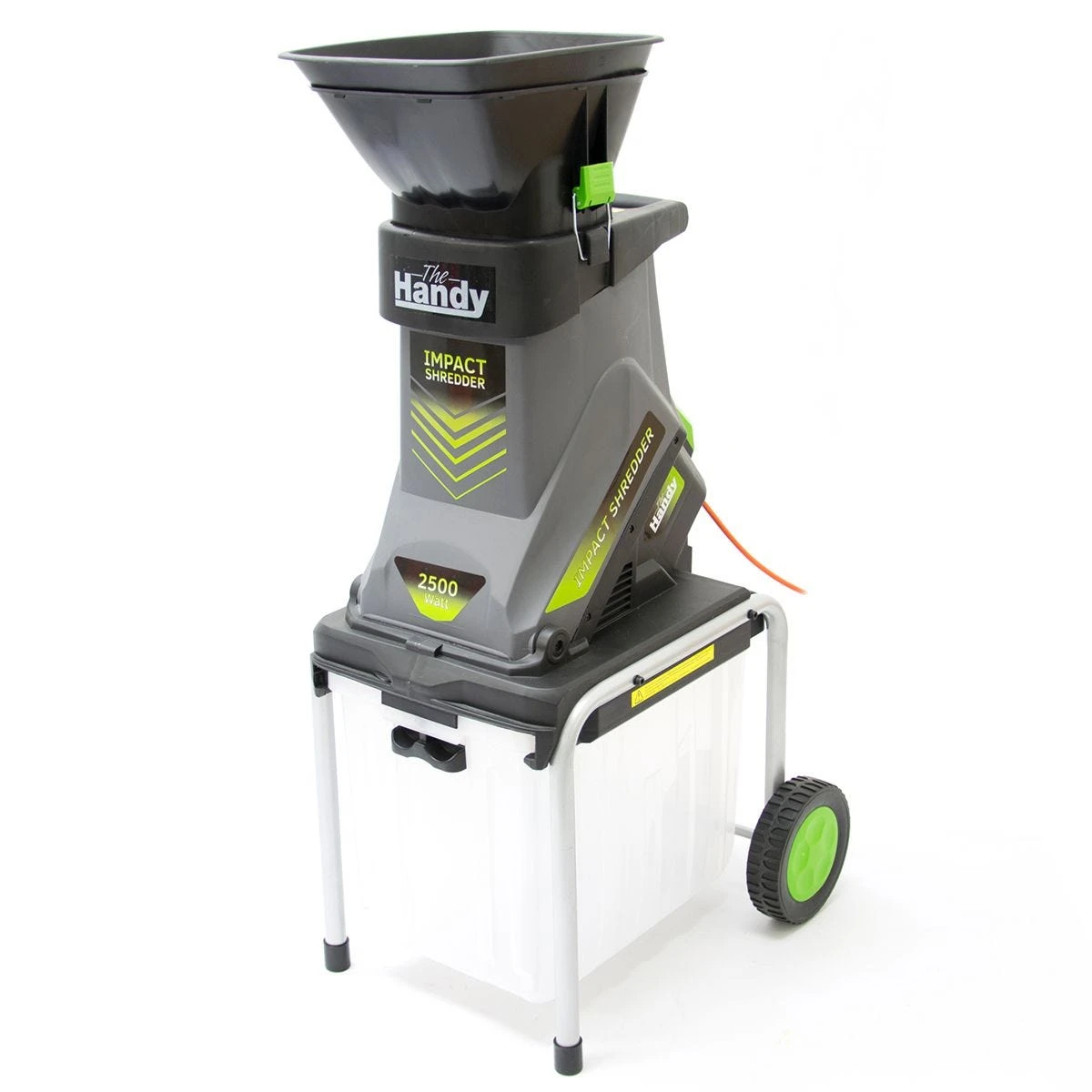 With the powerful The Handy 2500w Electric Impact-Shredder, grass-clippings, hedge trimmings, leaves – and even branches up to a sizeable 45mm in diameter – can all be reduced to a mulch that will prove easy to dispose of; and which will act as an effective compost for your flowerbeds and veg-plot!
