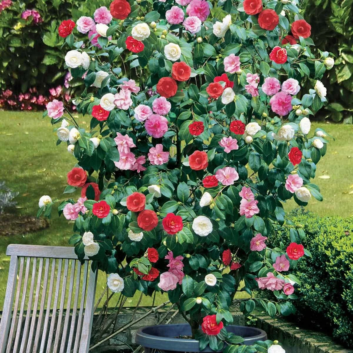 - The Camellia ‘Tricolour’ is the result of a very unique growing concept which cleverly gives the illusion of three flower colours growing on one plant