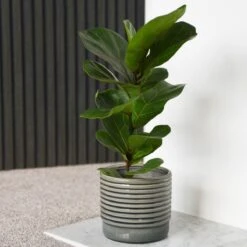 - Commonly known as the Fiddle-Leaf Fig, Ficus lyrata ‘Compacta’ is a spectacular house plant, grown for its impressive foliage. This handsome evergreen has lovely glossy leaves, which reflect the light beautifully. Each leaf has a stiff, leathery feel with a distinctive shape and pale, prominent veins. Although relatively slow-growing, if given the correct growing conditions it will ultimately form a tall, slender specimen. Ficus lyrata ‘Compacta’ requires plenty of bright light making it a good choice for a conservatory or bright living room. Please note: Some houseplants are toxic or harmful to pets if ingested. If you believe your pet has consumed a poisonous plant then seek veterinary attention immediately and take a sample of the plant with you. Position in a bright room, away from cold draughts and radiators, with a constant temperature of 16C-24C. Height: 3cm (118in). Spread: 1cm (39in)