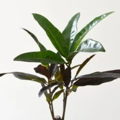 - Featuring bare stems topped with a canopy of lush foliage in variegated red, green and yellow hues