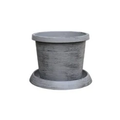 Made from durable plastic, it is weather resistant and lightweight making it easy to move around your garden. With a textured finished, it comes complete with its own pot saucer and pre-drilled drainage holes. Diameter: 39cm. Height: 3cm. 24 litres.