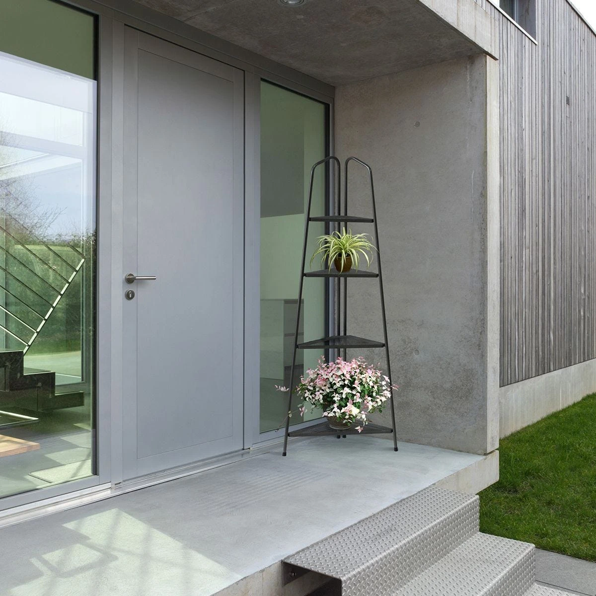 High-quality Modern Corner Plant Stand 4 Shelf ideal for both indoor and outdoor use, perfect for displaying pot plants, books, trinkets etc. Thanks to the strong, sturdy structure that’s manufactured from high-quality steel you will be able to display your pots without concern due to the durable construction.  Assembled with ease at home this modern simple design, made with delicate workmanship comes with all fixings included, so you can get to work straight out of the box.Â